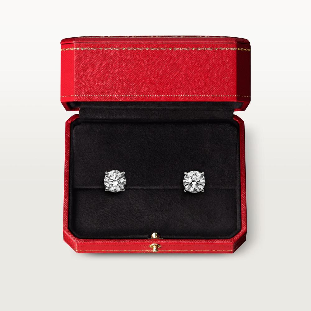 أقراط من مجموعة "1895"، مصنوعة من الذهب الأبيض 750/1000، وكل قرطٍ منها مرصّع بماسة بقطع بريانت...