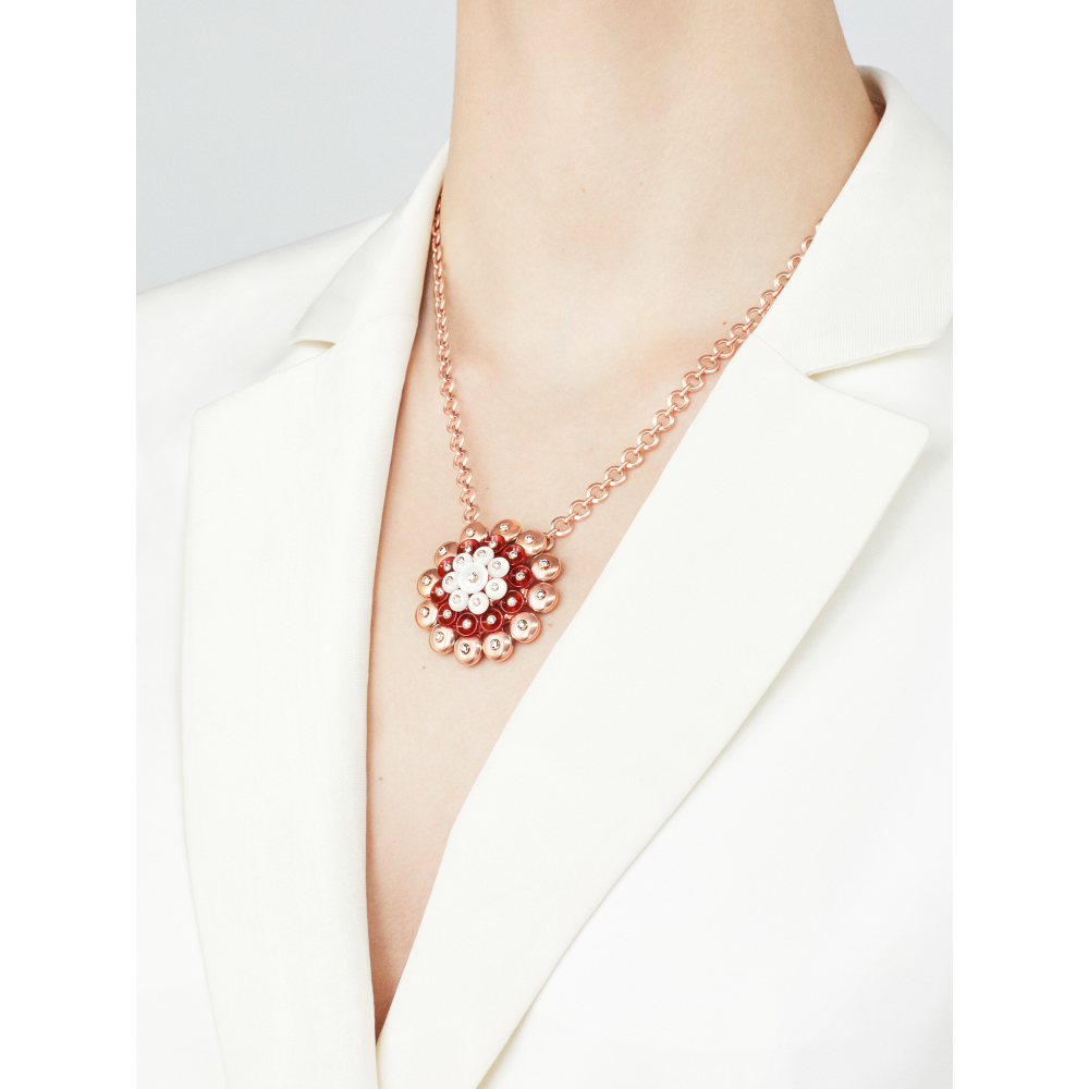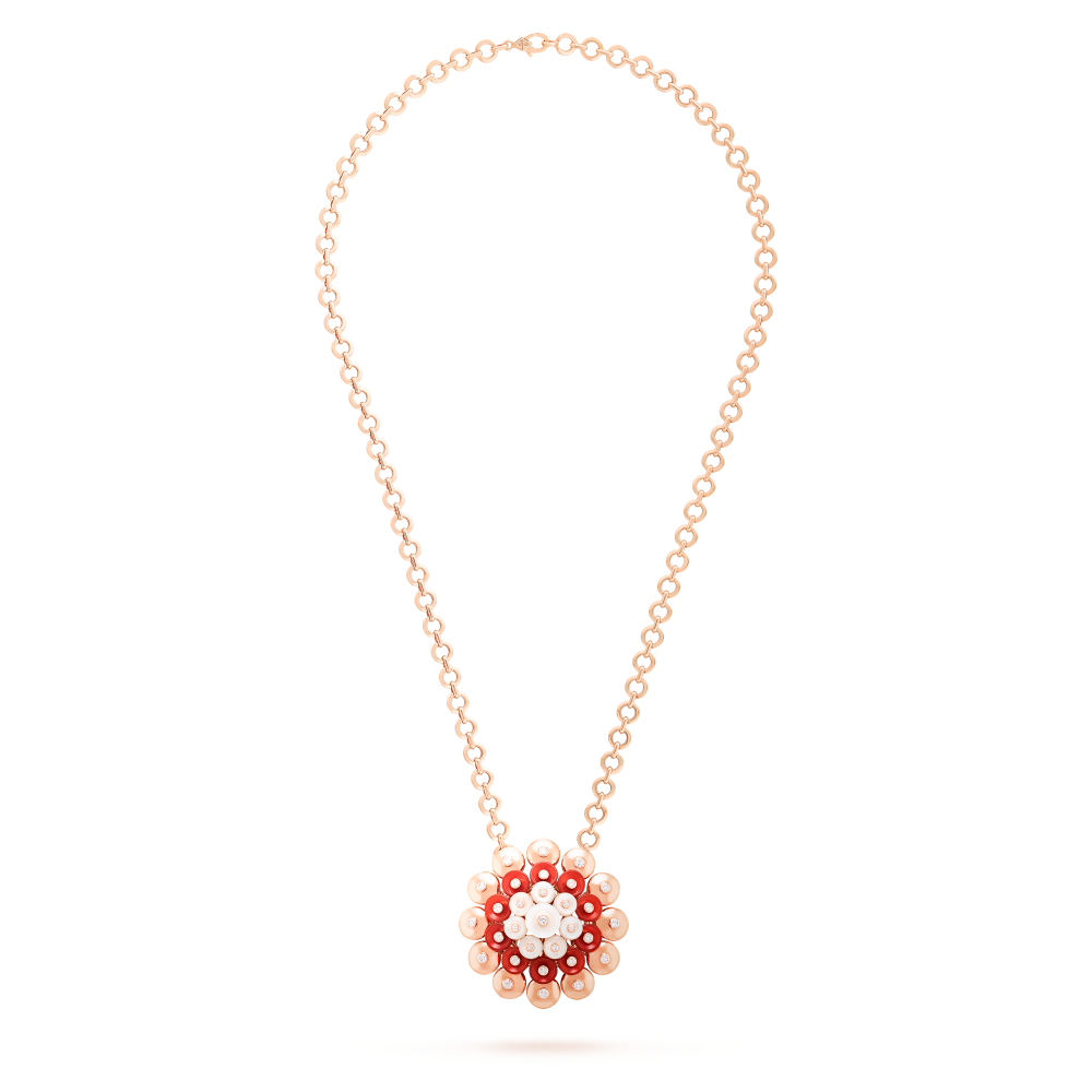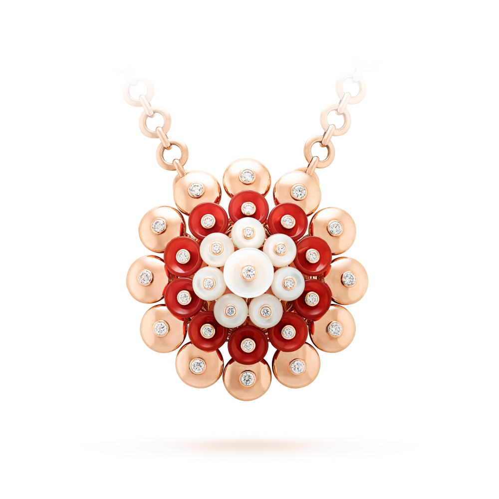 قلادة بوتون دور ذهب وردي 18 قيراط، عرق اللؤلؤ، كارنليان، ماس
